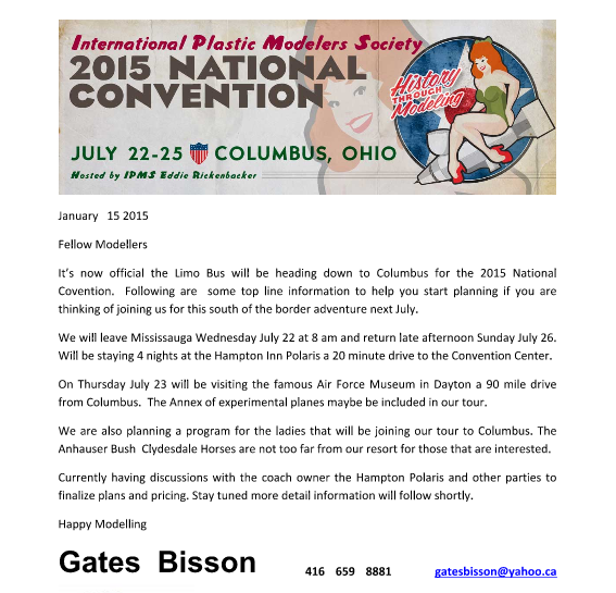 Gates Bisson is once again taking the initiative to organize a full-service bus trip to the IPMS National Contest in Columbus, Ohio. This is a preliminary announcement to gauge interest – more details will be coming shortly. Please contact Gates if you might be interested!